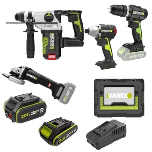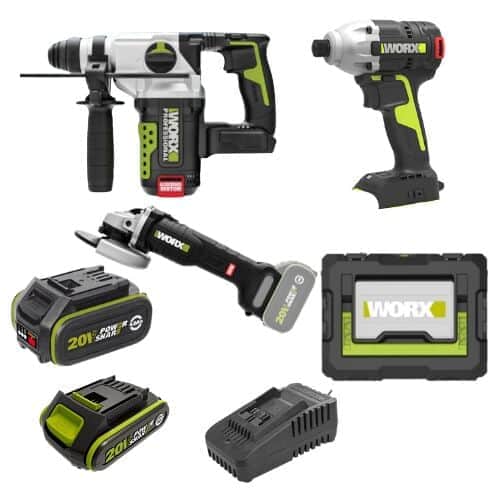4 כלים | שתי סוללות 4Ah + סוללה 2Ah ומטען וארגז | WORX 20V