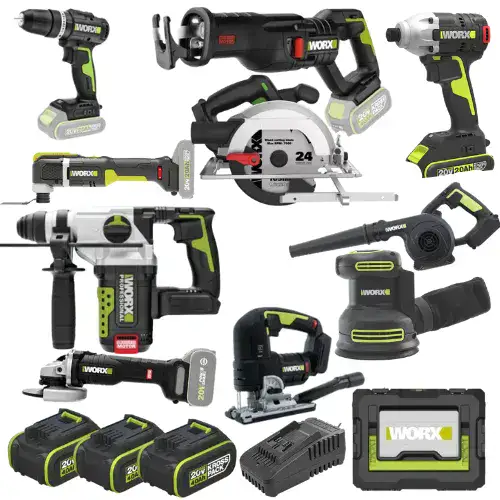 סט 10 כלים | שלוש סוללות 4Ah ומטען | WORX