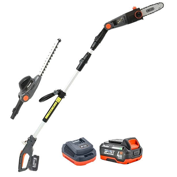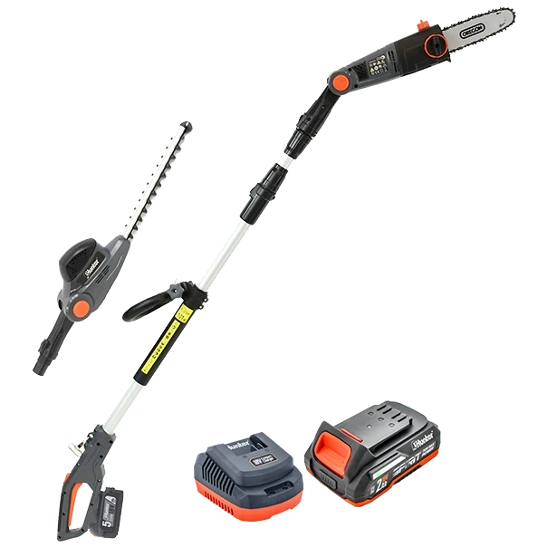 סט גוזם גדר חי ומסור שרשרת ""8 טלסקופי – סוללה 2.5Ah+מטען