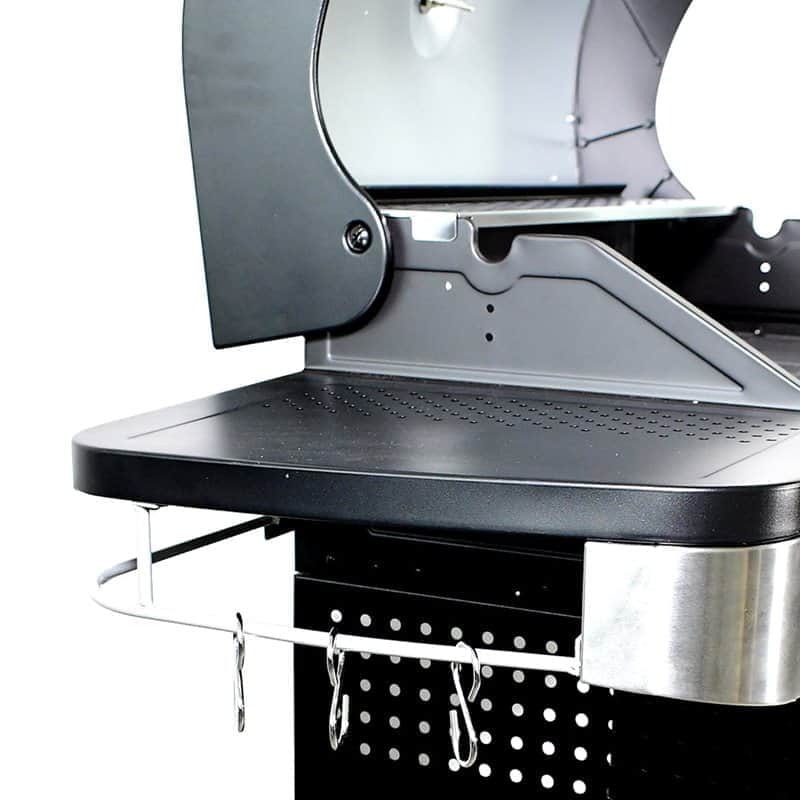 – הגריל מכיל תא אחסון תחתון מרווח לנוחות המשתמש. כמו כן, מדף הצד והכירה מכילים מוטות עם ווי תלייה לנוחיות המשתמש.