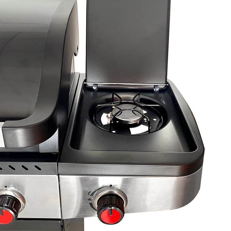 – הגריל בעל 4 מבערי נירוסטה וכירת צד איכותית בעוצמה של 50,000BTU. המבערים בעלי מגינים המצופים אמייל זכוכית איכותי עמידים בחום אשר עוזרים לפיזור אחיד של החום לצלייה איכותית ואחידה.