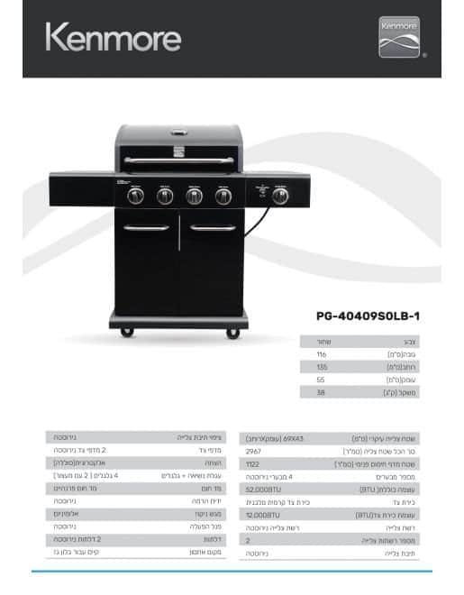 שטח צלייה עיקרי( עומקX רוחב) ס"מ69X43סך הכל שטח צליה (סמ"ר)2967מספר מבערים4 מבערי נירוסטהעוצמה כוללת (BTU)52,000BTUכירת צדכירת צד קרמית מלבניתעוצמת כירת צד (BTU)12,000BTUרשת צלייהרשת צלייה יצוקהמספר רשתות צלייה2תיבת צלייהכפולהציפוי תיבת צלייהמצופה אמיילעגלת נשיאה + גלגלים4 גלגלים ( 2 עם מעצור)מדפי צד2 מדפי צד בציפויי צבע שחורהצתהאלקטרונית(סוללה)מד חוםפרנהייטידית הרמהניקלמגש ניקוזמגש ניקוז +כוסית אלומיניוםפנל הפעלהציפויי שחורמקום אחסוןקיים עבור בלון גזמידהג-115 / ר-135 / ע-55משקל ק"ג40.000000צבע גוףשחור