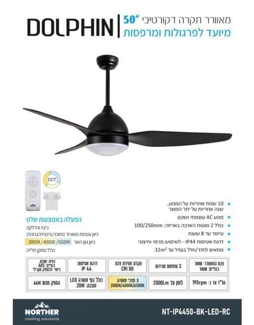 יש להתקין את המאוורר כשגובה הכנפיים במרחק של 2.3 מטר מהרצפה לפחות, גוון התאורה משתנה ע"י שלט