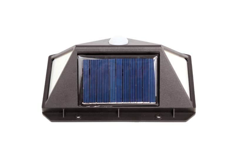 מנורת לד עם חיישן תנועה הנדלקת אוטומטית ברגע שהיא מזהה תנועה של עד 5 מטרים מהמנורה לא דורש חיבור לחשמל – נטען באמצעות פאנל סולארי התקנה קלה ופשוטה, באמצעות חיבור 2ברגים בלבד או הדבקה ע”י דבק דו צדדי 3M ניתן לשימוש בכניסה לבניין, בחצר או בכל מקום בעל חשיפה לשמש סוללת ליתיום נטענת בקיבולת 1200MAHהמספיקה לשימוש אינטנסיבי של עד 9שעות, לאחר חשיפה של יום שלם בשמש 3 מצבי עבודה שונים, המאפשרים תאורה בעוצמה שונה כאשר מזוהה תנועה ע”י החיישן 100נורות לד קטנות המפיקים אור עוצמתי של 200לומנס IP44חסין להתזת נוזלים ומתאים לשימוש בכל תנאי מזג האויר צבע לבן קר, טמפרטורה 6000K זוית פיזור אור 270מעלות