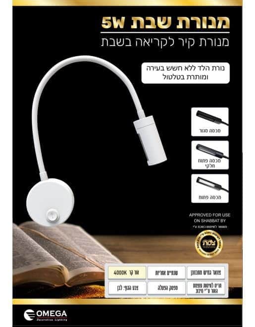 מנורת שולחן לד עם מנגנון הפעלה כשרה לשבת, ניתן לווסת את עוצמת האור בעזרת תריס: מכסה סגור, פתוח או מכסה פתוח חלקית. נורת הלד ללא חשש בעירה ומותרת בטלטול. באישור מכון צומת