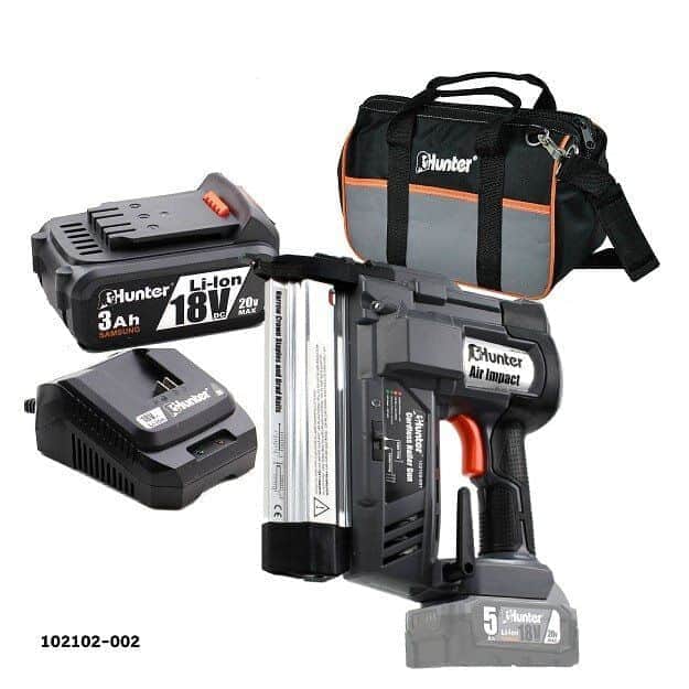 אקדח סיכות ומסמרים חשמלי 50W של Hunter. כלי עוצמתי ושימושי עבור מגוון רב של עבודות הידוק, התקנת יריעות, תיקון ביתי, עבודות בעץ ועוד. מומלץ במיוחד לנגרים, חובבי DIY, מתקיני רהיטים ועוד.