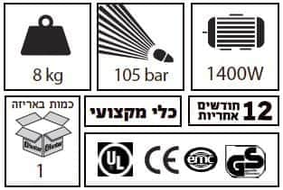 מכונת שטיפה  105 בר (לחץ מקסימלי) | Hunter