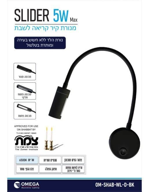 SLIDER מנורת קיר קריאה לשבת – שחור