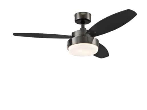 מאוורר תקרה ווסטינגהאוס מסדרת Alloy בגודל 42" . מנוע בצבע שחור וכנפיים בצבע שחור/אפור כהה MDF .הפעלת המאוורר נעשית באמצעות שלט והוא מתאים לחדרים בגודל של עד 20 מ"ר . תקופת האחריות הינה 15 שנה למנוע ושנתיים לשאר חלקי המאוורר