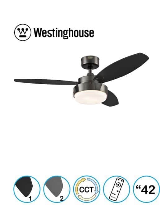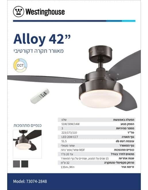 מאוורר תקרה 42" ALLOY שחור מטאל לד מובנה 20W CCT ושלט Westinghouse