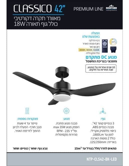 מאוורר תקרה קלאסיקו CCT 42" Classico – מותאם להפעלה עם