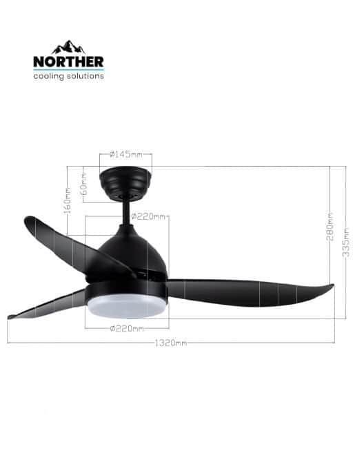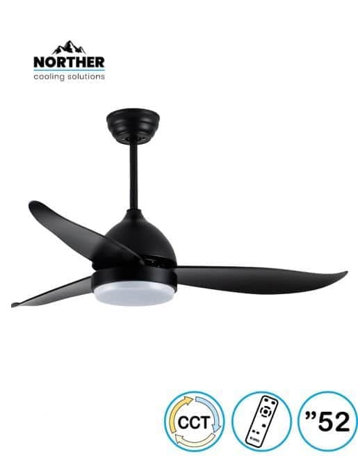 מותג NORTHER קוטר כנפיים 52 אינץ' (132 ס"מ) צבע הגוף לבחירה שחור צבע כנפיים שחור הפעלה באמצעות שלט גוף תאורה 20W CCT Kelvin 3000K/4000K/5000K גודל החלל מתאים לחדר/חלל בגודל עד 32m² מבנה להבים ABS סוג מנוע AC הספק מנוע 62W סל"ד 198rpm זרימת אויר 179m³/Min דרגת אטימות IP20 מצב חורף לא כולל אחריות על המנוע 10 שנים אחריות על הגוף שנה גוון אור גוון אור משתנה מבנה גוף מתכת עם/בלי תאורה כולל גוף תאורה