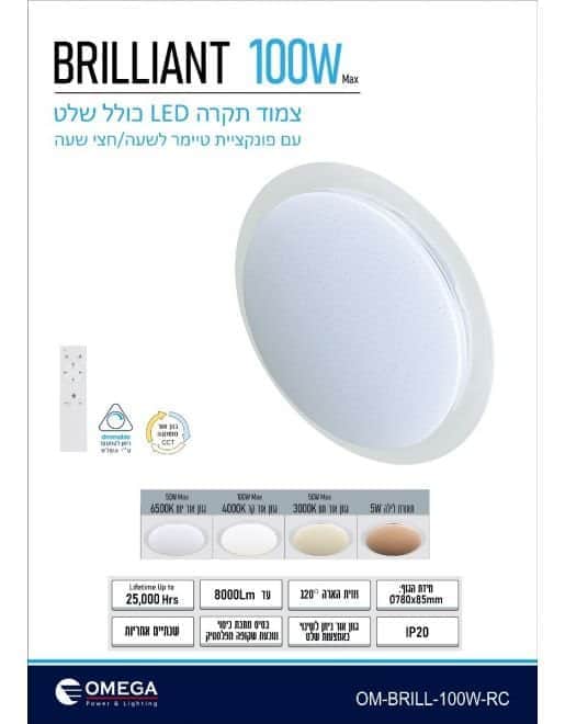 צמוד תקרה דגם BRILLIANT גוון אור משתנה וטיימר 100W