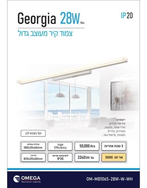 גוף תאורה צמוד קיר לסלון דגם ג'ורג'יה בעיצוב אלגנטי ומודרני, יתאים גם להארת חדרי מלון, מבואות, משרדים, גלריות תמונות, מראות, חדרי שינה ועוד…