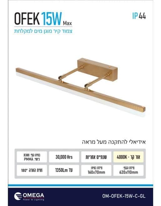 גוף תאורה צמוד קיר OFEK זהב מוגן מים IP44