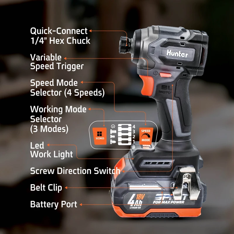 מברגת אימפקט בראשלס Gen 3 – הדור החדש של העוצמה – מברגת האימפקט המהפכנית של Hunter מציבה סטנדרט חדש בתעשייה. מנוע בראשלס מתקדם בהספק 500W מספק עוצמה, יעילות ואורך חיים יוצאי דופן בגוף קומפקטי במיוחד.