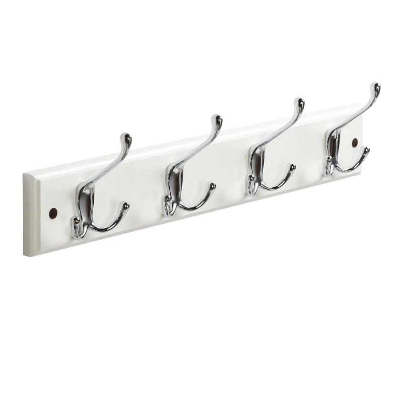 קולב מגבות עץ מפואר 4 ווים כפולים לבן
